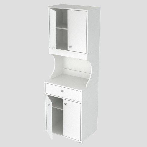 1 Drawer Kitchen Microwave Storage Cabinet With Open Space White
